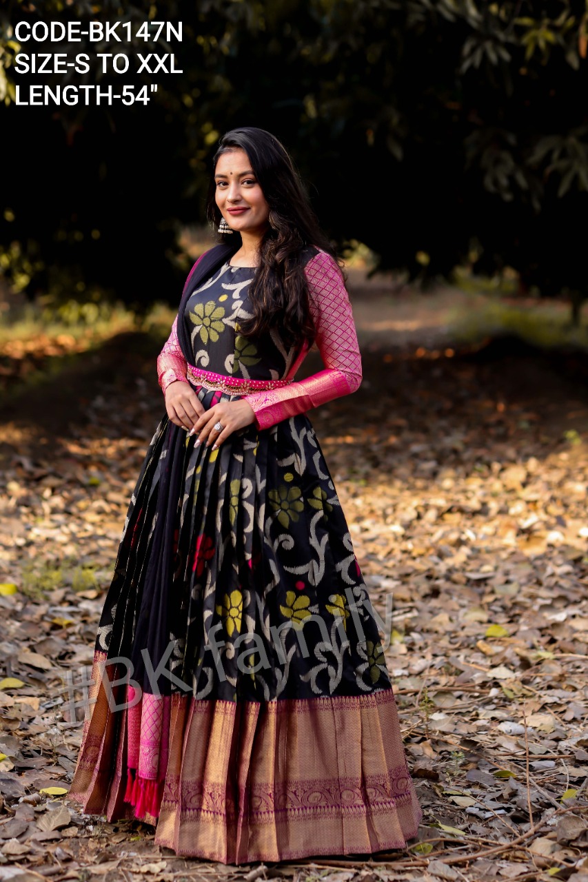 Benaras pattu longfrock Posted bySiyafashiongalleryMay 27, 2021Posted inUncategorized Benaras pattu longfrock paired with net dupatta and work hipbelt. Sizes:S M L XL XXL Floor length:54 Share this: Click to share on X (Opens in new window) X Click to share on Facebook (Opens in new window) Facebook Like Loading... Related